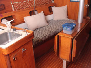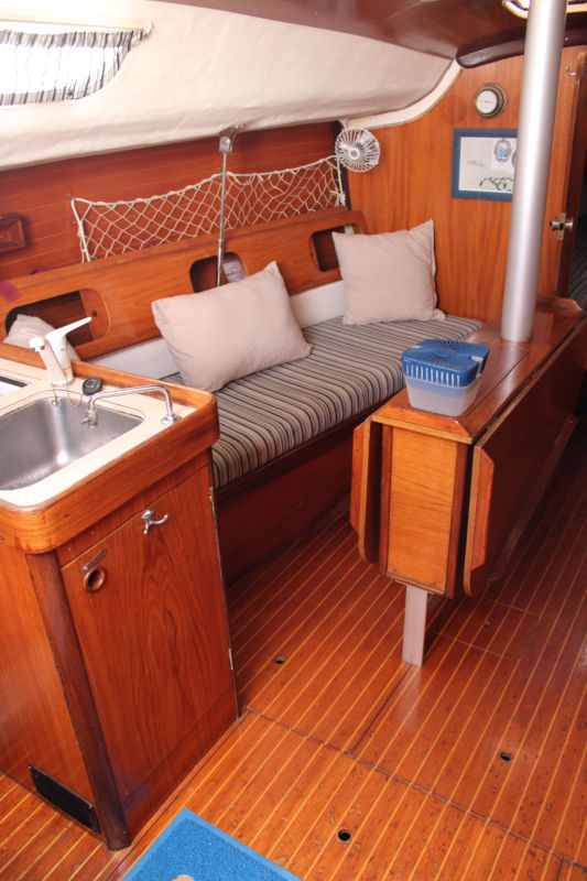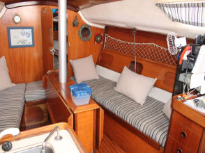 This Benetau First 29 is a strongly constructed yacht and has been regularly upgraded and maintained for livabord / extended holiday use. She is from an era that prioritised quality construction with a sporty and sea-kindly performance and boasts the nice wood interior that you do not see in today’s boats. She is tiller steered which frees up space in the cockpit and gives optimum feel to the helmsman.
